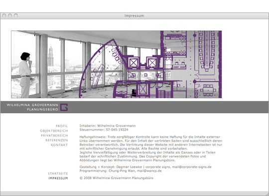 Website-Konzept und -Design auf Basis der Corporate-Design-Entwicklung – für Wilhelmina Grovermann Planungsbüro (Individuelle Innenausbauten, Raum- und Möblierungsplanungen). www.wilhelmina-grovermann.de